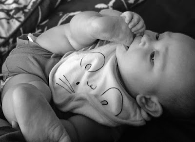 I am going to send you over to my mom's blog for Caturday this week - Vicarious Travelling. She has a fun post about Avery visiting The Cottage and meeting most of our extended family. The best though are the shots that show Avery meeting Rasta - Rasta is not impressed with this other tiny cute thing getting all the attention. He did jump into the stroller though, and definitely enjoyed that. Cats and babies, something for everyone.